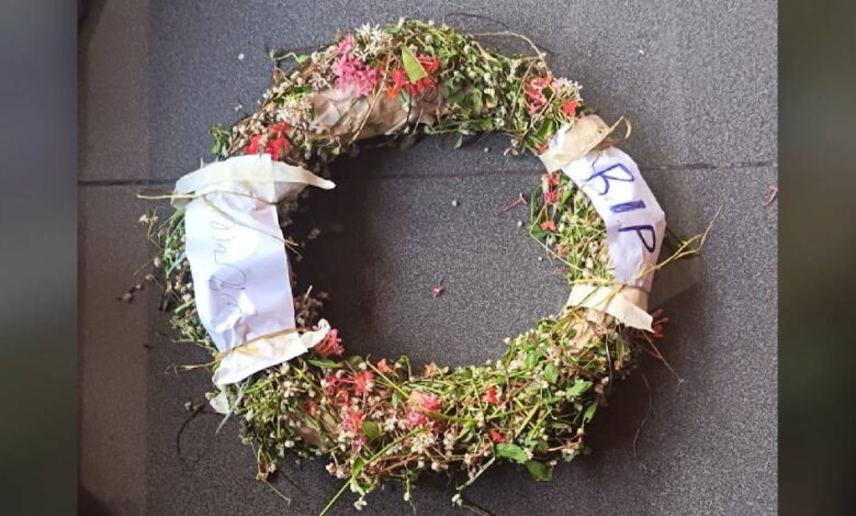 കണ്ണൂരിൽ യൂത്ത് കോൺഗ്രസ് നേതാവിന്റെ വീടിന് മുന്നിൽ റീത്ത്; പിന്നിൽ ഡിവൈഎഫ്ഐ എന്ന് ആരോപണം