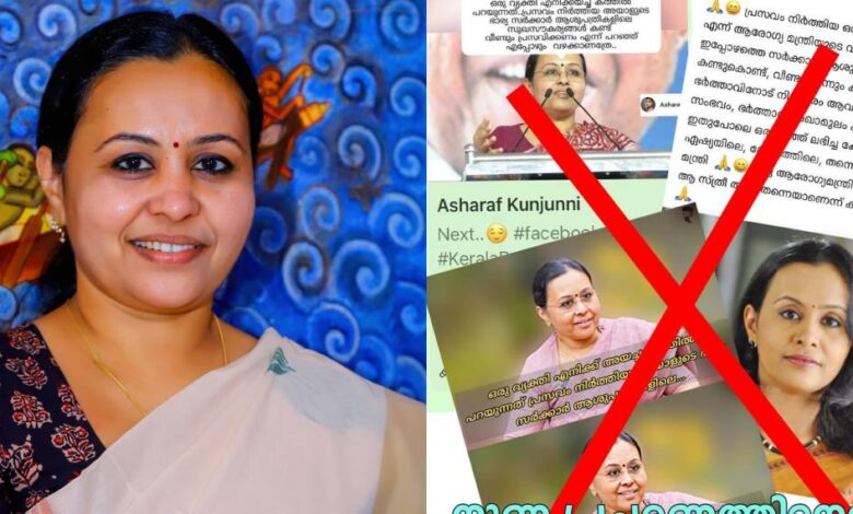 പത്തനംതിട്ട: സമൂഹമാധ്യമങ്ങളിൽ തനിക്കെതിരെ നടക്കുന്ന നുണപ്രചരണത്തിനെതിരെ നിയമനടപടി സ്വീകരിച്ചതായി ആരോഗ്യ വകുപ്പ് മന്ത്രി വീണാ ജോർജ്. ഫേസ്ബുക്ക് കുറിപ്പിലൂടെയാണ് മന്ത്രിയുടെ പ്രതികരണം. മന്ത്രി പറഞ്ഞുവെന്ന പേരിൽ ഫോട്ടോ ഉൾപ്പെടുത്തിക്കൊണ്ട് പ്രചരിക്കുന്ന ചിത്രങ്ങളുടെയും അധിക്ഷേപ കുറിപ്പുകളുടെയും സ്ക്രീൻഷോട്ടുകൾ വീണാ ജോർജ് പങ്കുവെച്ചു. പോസ്റ്ററിൽ കാണുന്ന വരികൾ എവിടെയെങ്കിലും പറഞ്ഞതായി തെളിയിക്കാൻ ഇത് പ്രചരിപ്പിക്കുന്നവരെ മന്ത്രി വെല്ലുവിളിക്കുകയും ചെയ്തു.