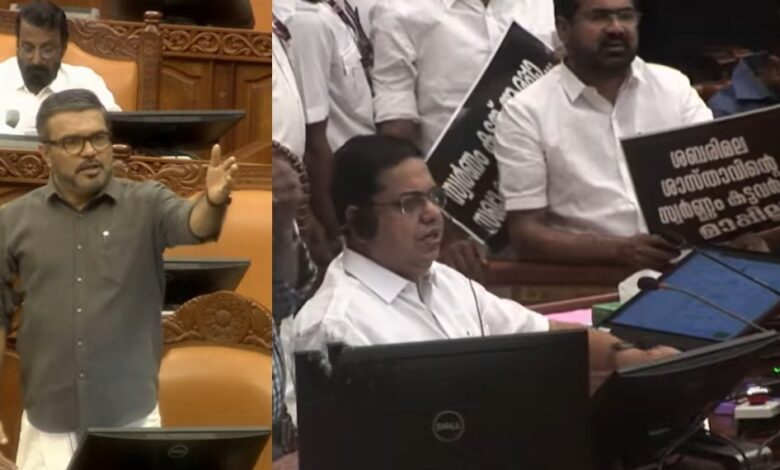 മന്ത്രി വി ശിവൻകുട്ടിയും പ്രതിപക്ഷത്തിനെതിരെ വിമർശനവുമായി രംഗത്തുവന്നു. എന്താണ് പ്രതിപക്ഷത്തിന്റെ ആവശ്യമെന്നും മാധ്യമങ്ങളിൽ ശ്രദ്ധ കിട്ടുന്നില്ല എന്നുള്ളതുകൊണ്ടാണ് സഭയിൽ അവർ പ്രതിഷേധിക്കുന്നത്. പ്രതിപക്ഷ നേതാവ് എംഎൽഎമാരെ വിളിച്ച് സ്പീക്കറുടെ ഡയസിലേക്ക് കയറാൻ ക്ലാസ് എടുത്തുകൊടുത്തു. ഇതിൽ കൂടുതൽ എങ്ങനെയാണ് സഹിക്കുക എന്നും ശിവൻകുട്ടി ചോദിച്ചു. ഇതിനിടെ സ്വർണം കട്ടത് ആരപ്പാ, കോൺഗ്രസ് ആണേ അയ്യപ്പ, സംരക്ഷിക്കുന്നത് ആരപ്പാ, സോണിയ ഗാന്ധിയെയാണ് അയ്യപ്പാ എന്ന പാരഡി ഗാനവും ശിവൻകുട്ടി പാടി.എൽഡിഎഫ് കൺവീനറും എംഎൽഎയുമായ ടി പി രാമകൃഷ്ണനും രൂക്ഷവിമർശനവുമായി രംഗത്തെത്തി. കേരളത്തിൽ ഒരു വികസനവും അനുവദിക്കില്ല എന്ന നിലപാടാണ് പ്രതിപക്ഷത്തിന് എന്ന് ടി പി രാമകൃഷ്ണൻ കുറ്റപ്പെടുത്തി.