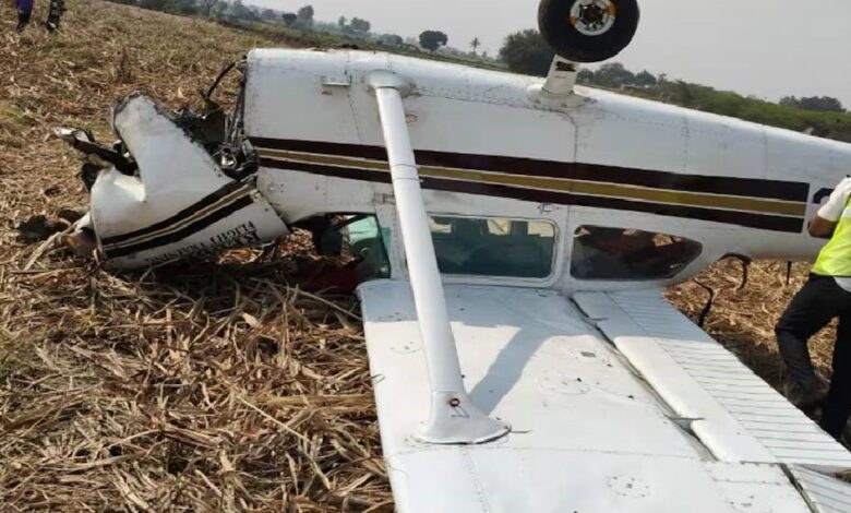 നിയന്ത്രണം നഷ്ടമായ വിമാനം പാടത്തേക്ക് വീണ് മൂന്ന് കഷ്ണങ്ങളായി വേര്പെടുകയായിരുന്നു. കലബുറഗിയില് നിന്ന് ബെലഗാവിലേക്ക് പറക്കുകയായിരുന്നു വിമാനം. അപകടത്തിന്റെ കൃത്യമായ കാരണം വ്യക്തമായിട്ടില്ല. സംഭവത്തില് പൊലീസ് അന്വേഷണം ആരംഭിച്ചു.