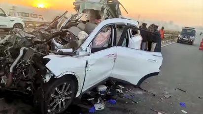 അമിത വേഗത്തിലെത്തിയ കാര്‍ ചരക്കുലോറിയിലേക്കും ബൈക്കിലേക്കും ഇടിച്ചു കയറി, 7 പേര്‍ക്ക് ദാരുണാന്ത്യം