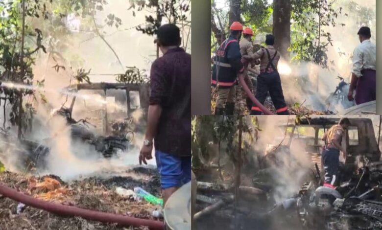 ക്ലീനിങ് സ്റ്റാഫ് ചപ്പുചവറുകൾ കത്തിക്കുന്നതിനിടയിൽ തീപടർന്നു, പാങ്ങോട് പൊലീസ് സ്റ്റേഷനിൽ സൂക്ഷിച്ചിരുന്ന വണ്ടികൾക്ക് തീപിടിച്ചു