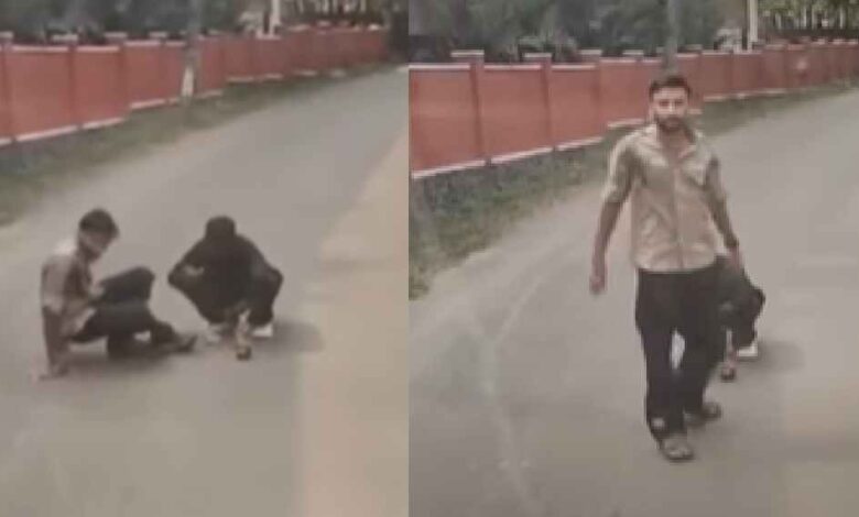 റോഡില്‍ നിന്ന് മാറാന്‍ പറഞ്ഞ് ലോറി ഡ്രൈവര്‍ ഹോണ്‍മുഴക്കിയെങ്കിലും ഇരുവരും മാറിയില്ലെന്ന് മാത്രമല്ല ഇയാളെ ഭീഷണിപ്പെടുത്തുകയും ചെയ്തു. സംഭവത്തിന്റെ ദൃശ്യങ്ങള്‍ പുറത്തുവന്നിട്ടുണ്ട്