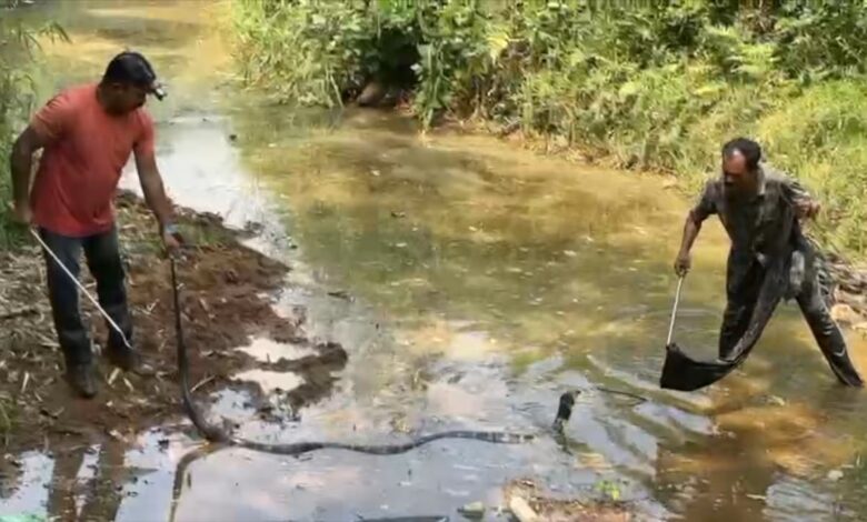 ഉച്ചസമയത്ത് റബർതോട്ടത്തിൽ ഒരനക്കം, എന്താണെന്ന് നോക്കിയപ്പോൾ കൂറ്റൻ രാജവെമ്പാല, സാഹസികമായി പിടികൂടി