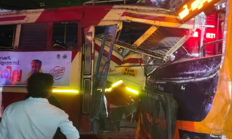 ഇന്നലെ രാത്രി പത്തരയോടെയായിരുന്നു അപകടം. കോഴിക്കോട്-തിരുവനന്തപുരം സ്വിഫ്റ്റ് സൂപ്പർഫാസ്റ്റ് ബസും കോഴിക്കോട്-ചെങ്ങന്നൂർ സൂപ്പർഫാസ്റ്റ് ബസുമാണ് കൂട്ടിയിടിച്ചത്. പരിക്കേറ്റവരെ അടുത്തുള്ള സ്വകാര്യ ആശുപത്രിയിലേക്കും താലൂക്ക് ആശുപത്രിയിലേക്കും മാറ്റി. ആരുടെയും പരിക്ക് ഗുരുതരമല്ല.
