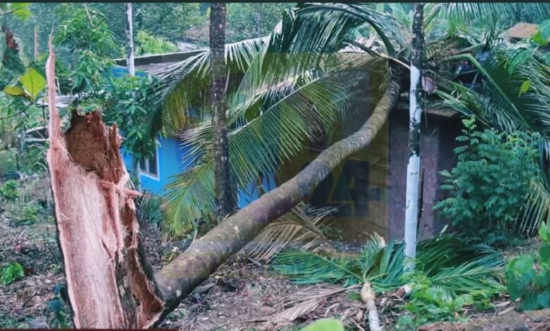 കേളകം കുണ്ടേരിയിൽ കരിമ്പിൽ സുനിലിൻ്റെ വീടിന് മുകളിലേക്ക് പ്ലാവ് വീണ് ആസ്ബറ്റാസ് തകർന്നു. ഇല്ലിമുക്കിൽ തൈയ്യുളളത്തിൽ ചന്ദ്രൻ, പൊയ്യമലയിൽ അപ്രത്തുകാട്ടിൽ വർഗീസ് എന്നിവരുടെ വീടിന് മുകളിൽ തെങ്ങ് വീണു. കൊട്ടിയൂർ കോലാഞ്ചിയിൽ വട്ടുകളും മനോജ്, ചെറുകാലായിൽ പാപ്പച്ചൻ, നരിമറ്റം ഷാജു എന്നിവരുടെ വീടുകൾക്ക് മുകളിൽ മരം വീണു.