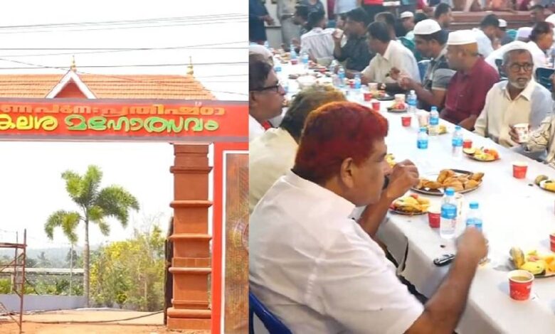 അന്നദാനത്തിന് പങ്കെടുക്കാൻ കഴിയാത്ത മുസ്ലിം കുടുംബങ്ങൾക്ക് വേണ്ടി; കാസർകോട് ക്ഷേത്ര മുറ്റത്ത് സമൂഹ നോമ്പുതുറ