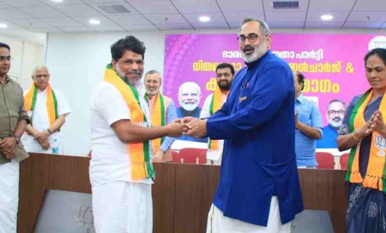 തിരുവനന്തപുരം: തൃശൂര്‍ ഡിസിസി മുൻ വൈസ് പ്രസിഡന്റ് അഡ്വ. എം എസ് അനില്‍ കുമാര്‍ ബിജെപിയില്‍ ചേര്‍ന്നു. ബി ജെ പി സംസ്ഥാന ഓഫീസില്‍ നടന്ന ചടങ്ങില്‍ സംസ്ഥാന പ്രസിഡന്റ് രാജീവ് ചന്ദ്രശേഖര്‍ അനില്‍ കുമാറിനെ ഷാളണിയിച്ച് പാര്‍ട്ടിയിലേക്ക് സ്വീകരിച്ചു. ബി ജെ പി ദേശീയ സംഘടനാ ജനറല്‍ സെക്രട്ടറി ബി എല്‍ സന്തോഷ്, സംസ്ഥാന പ്രഭാരി മുന്‍ കേന്ദ്രമന്ത്രി പ്രകാശ് ജാവദേക്കര്‍, കേന്ദ്രമന്ത്രി ശോഭാ കരന്തലജെ എന്നിവര്‍ അനില്‍ കുമാറിനെ അഭിനന്ദിച്ചു.
