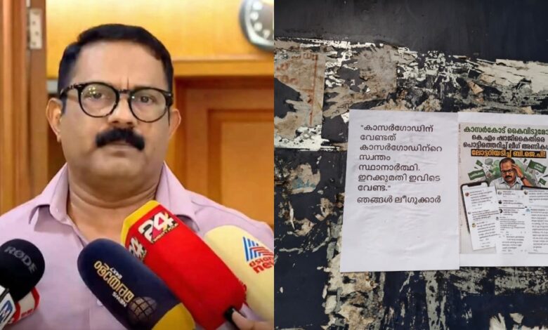 കാസര്കോടിന് വേണ്ടത് സ്വന്തം സ്ഥാനാര്ത്ഥിയെ, ഇറക്കുമതി ഇവിടെ വേണ്ട’; കെ എം ഷാജിക്കെതിരെ പോസ്റ്റർ