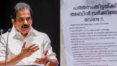 സ്പിരിറ്റ് കളയുന്ന സമീപനം ഉണ്ടാകരുത്’; ആറന്മുളയിൽ അബിൻ വർക്കിക്കെതിരെ പോസ്റ്റർ പതിച്ചതിൽ കെ സി വേണുഗോപാൽ